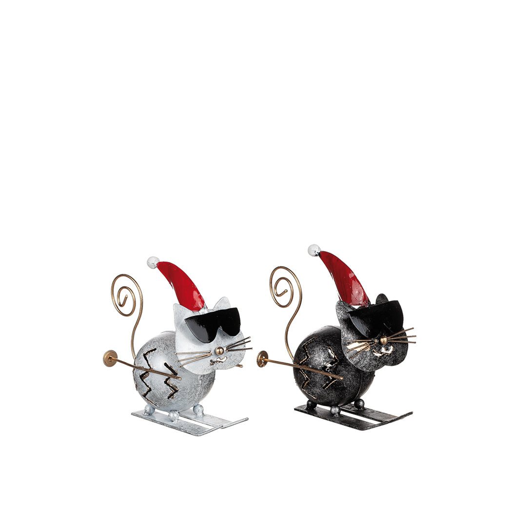 Den lilla katten står stadigt på sina skidor och tillför både personlighet och glädje till rummet. Tack vare den kompakta storleken passar den perfekt i fönster, på en hylla eller som en del av en dekorerad bordsdukning. En rolig inredningsdetalj som lyfter fram både ditt sinne för humor och din känsla för detaljer.