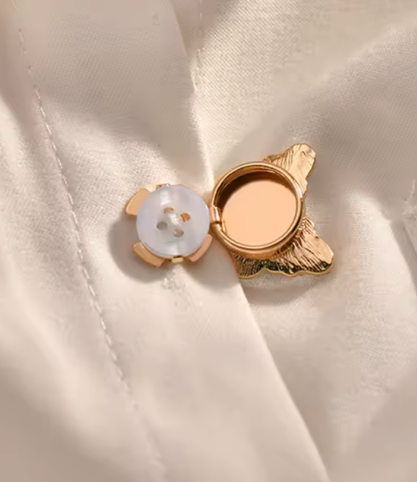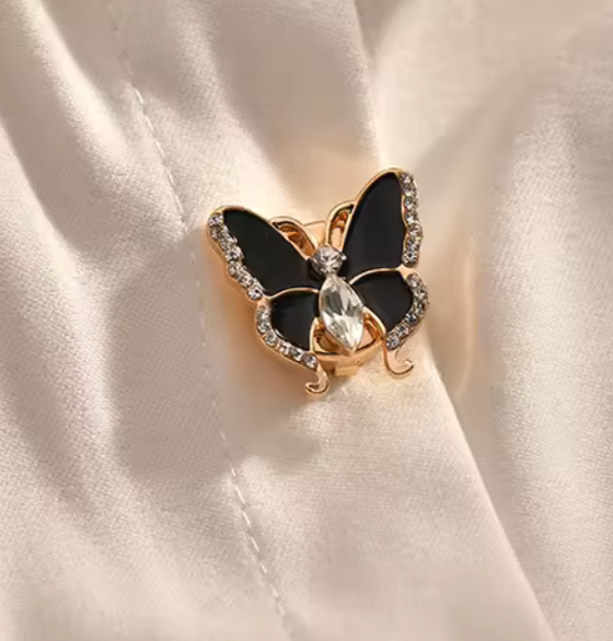 Detta knappsmycke i form av en fjäril är ett enkelt sätt att piffa till en klassisk skjorta, blus eller kavaj – utan att byta plagg.