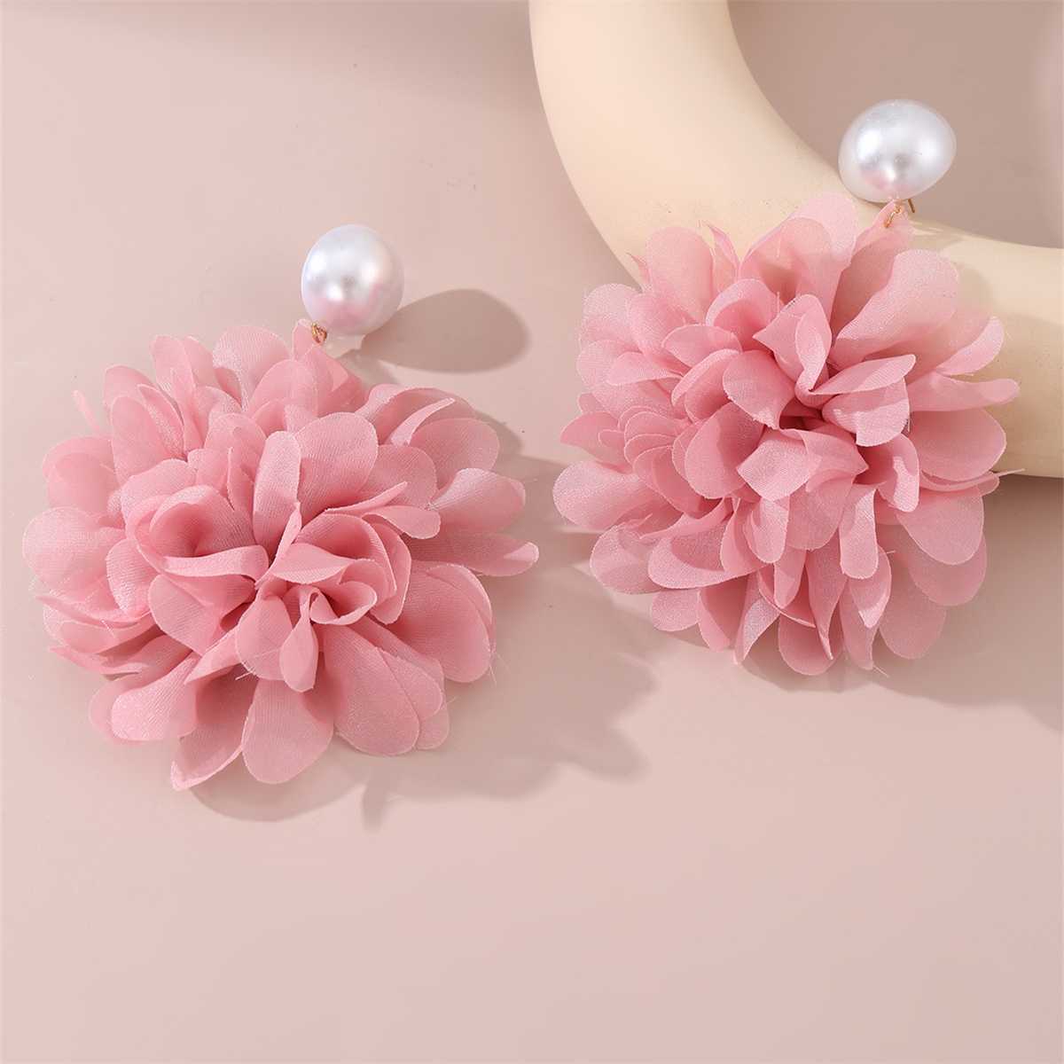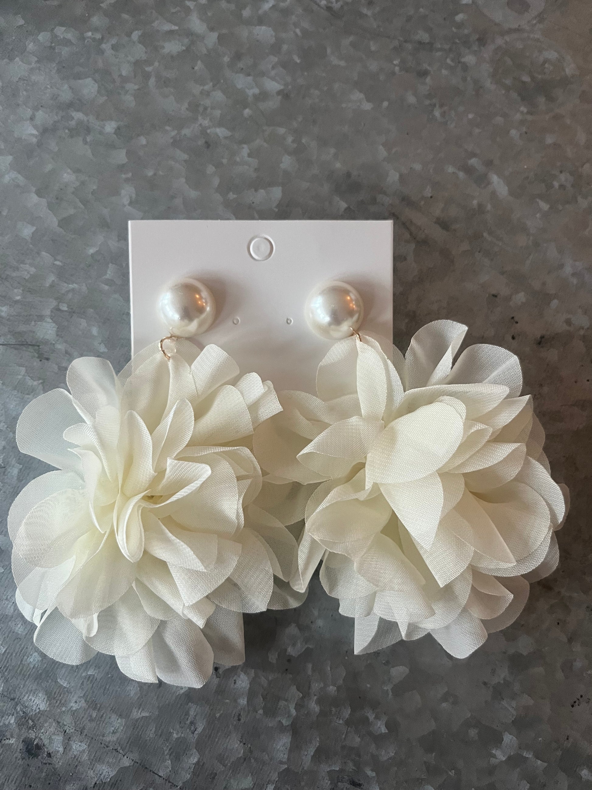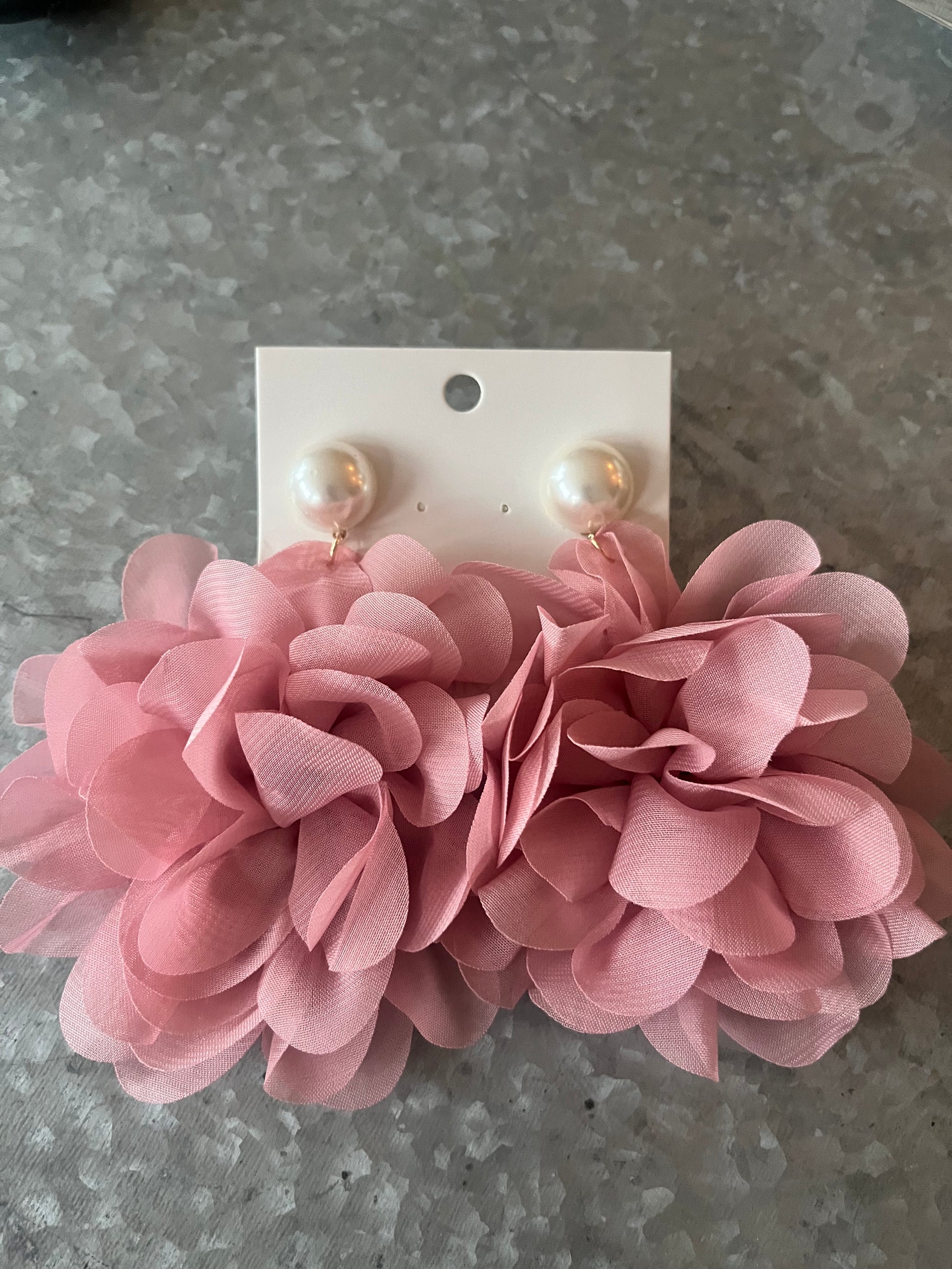 Örhängen Flower Fluff – festliga örhängen med pärla och tygblomma