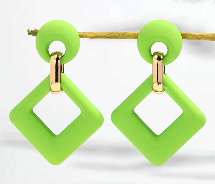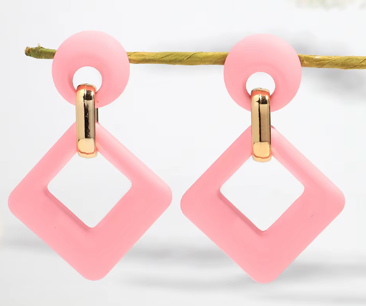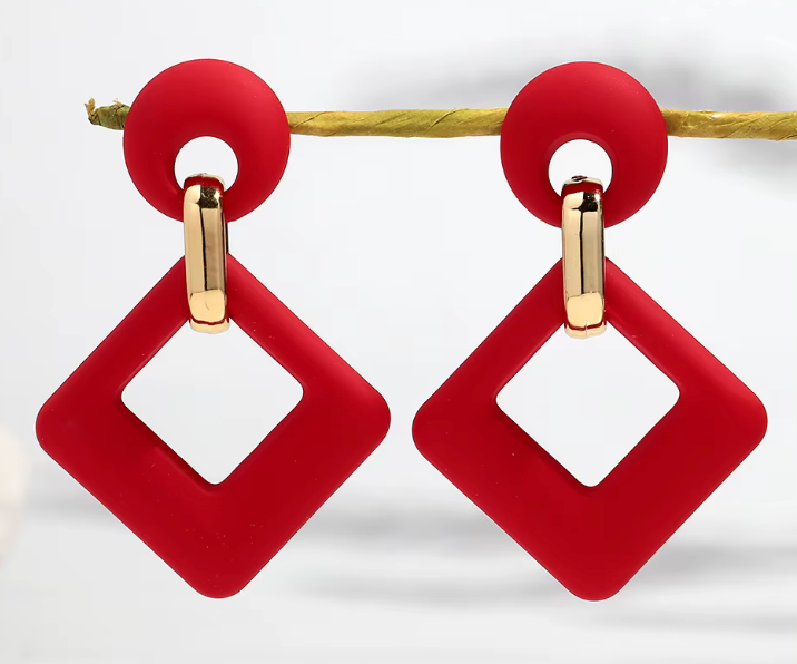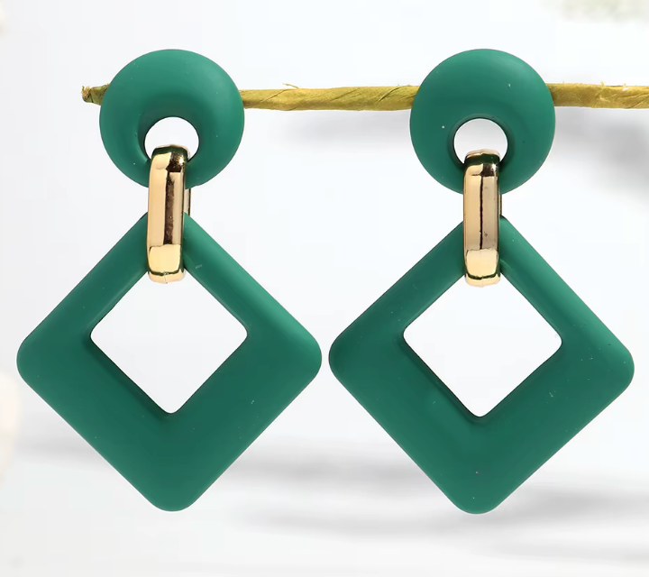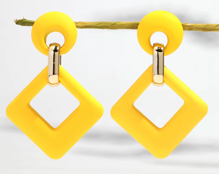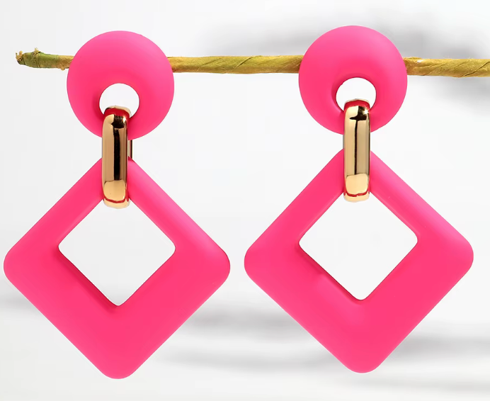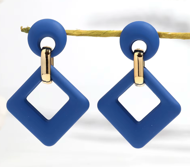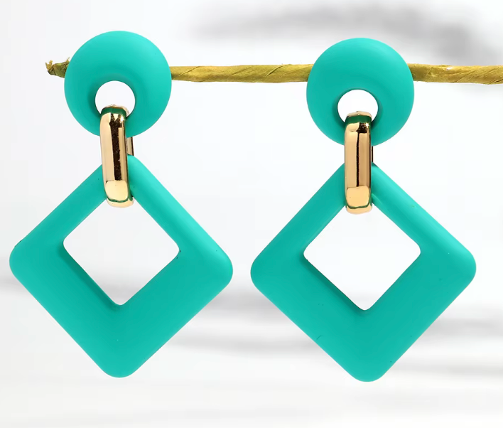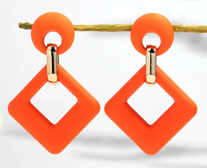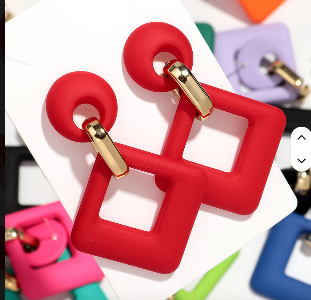 Ge din stil en färgkick med våra geometriska örhängen i akryl. Med sin matta yta, lätta design och moderna form är de både bekväma att bära och enkla att matcha till olika outfits. Örhängena finns i flera härliga färger – från klassiskt svart till rött, blått, lila, rosa, grönt och fler – så att du kan välja efter humör och tillfälle.