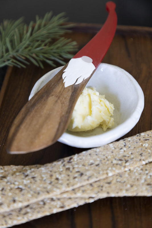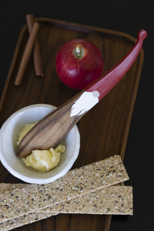 Gör julens måltider extra stämningsfulla med vår smörkniv ”Tomte” i teak. Den 18 cm långa kniven är tillverkad i hållbart trä och har ett dekorativt tomtemotiv på handtaget, vilket gör den till en både praktisk och charmig detalj vid frukostbordet, julbordet eller glöggfesten.