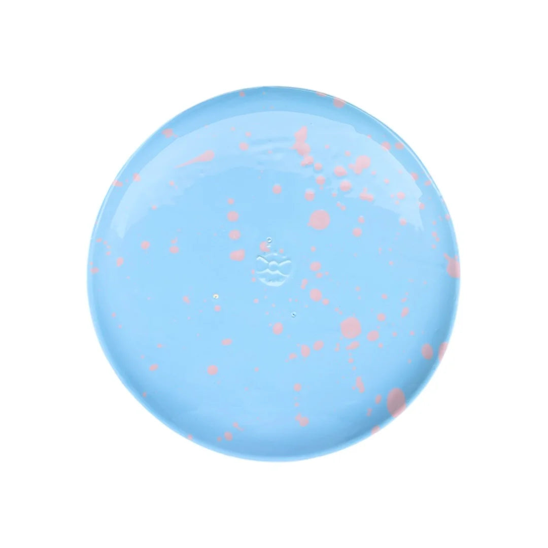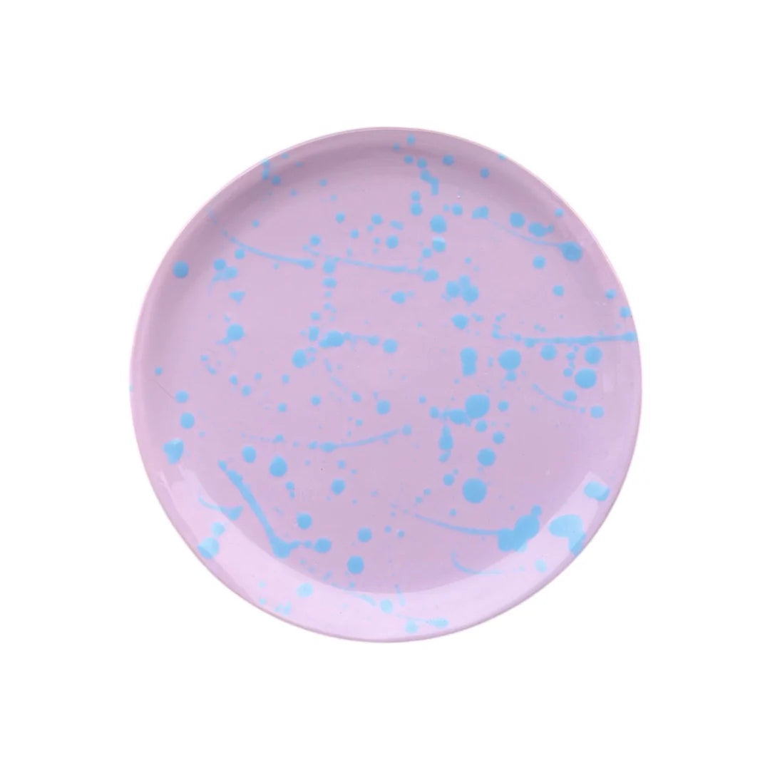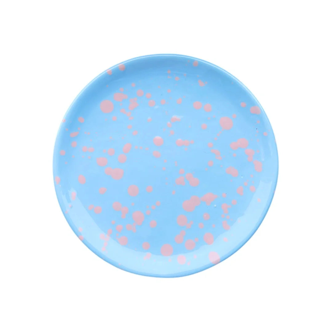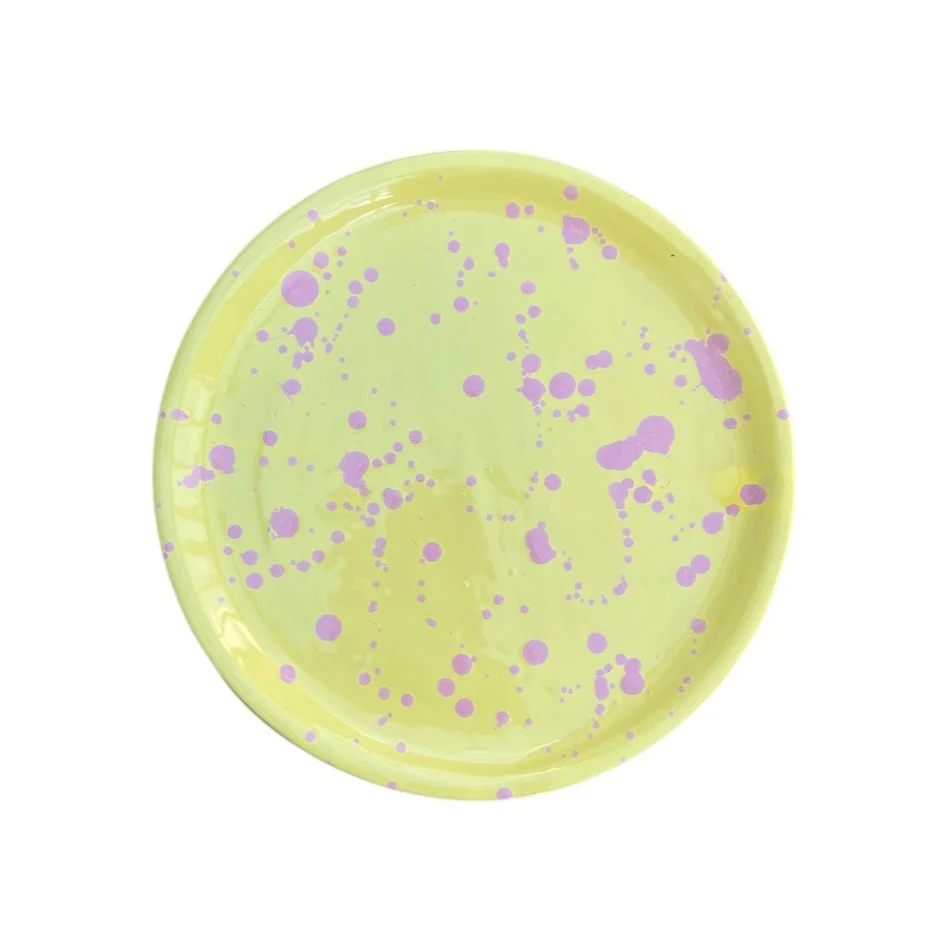 En färgstark och lekfull tallrik från serien Tropicopop. Den handgjorda tallriken i stengods har ett dekorativt stänkmönster som ger varje exemplar ett unikt uttryck och gör dukningen lite mer personlig.