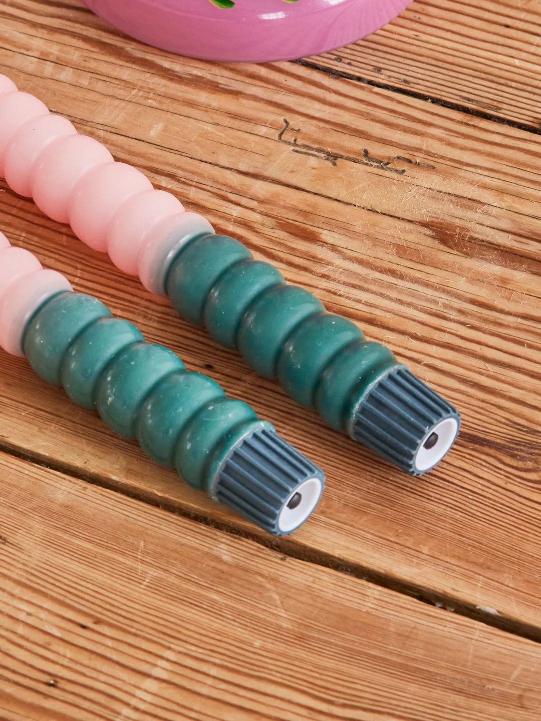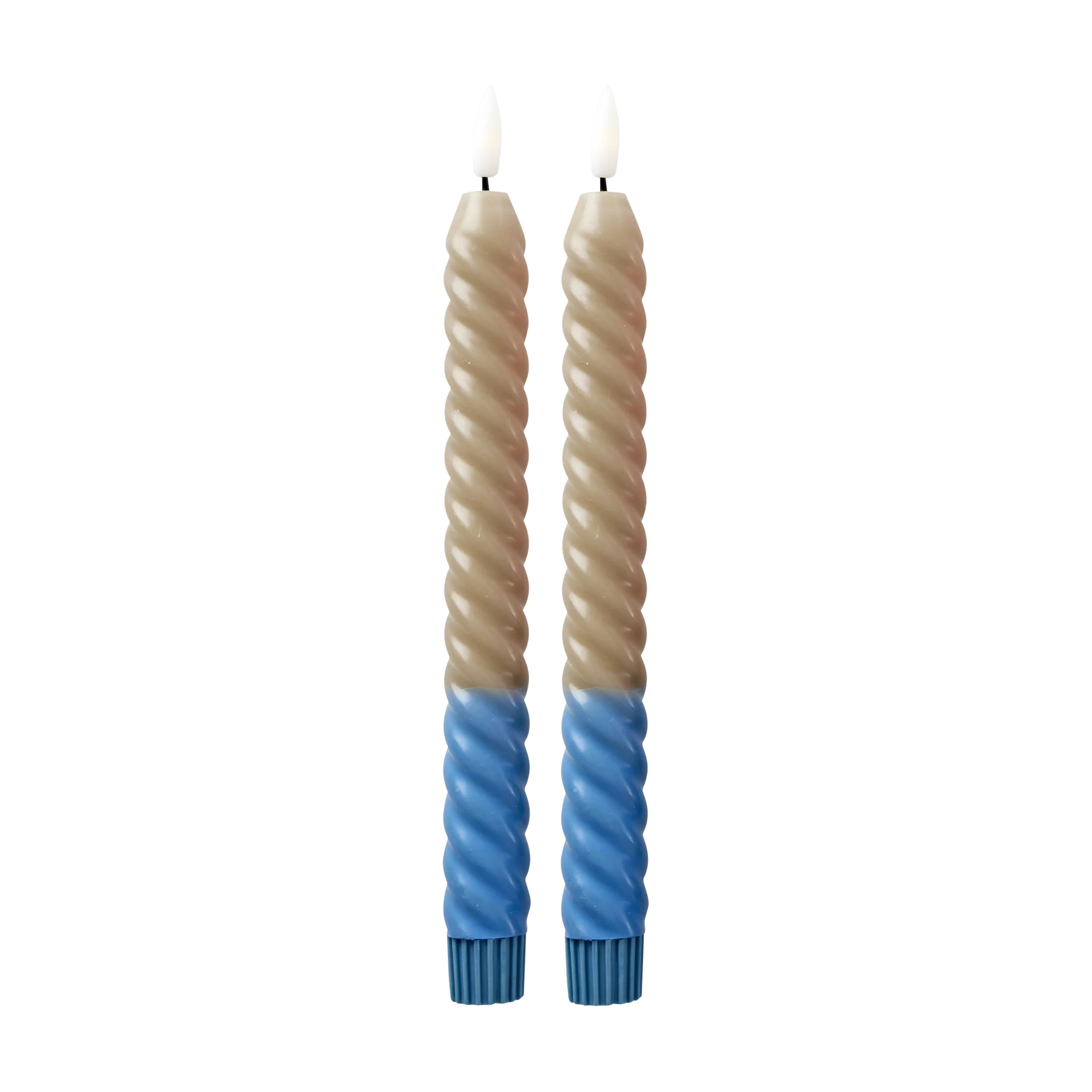 Skapa stämning året runt med våra underbara LED-ljus i en vacker färgkombination av grönt och mjukt rosa. Dessa batteridrivna ljus levereras i ett set om två och är designade med en fladdrande, verklighetstrogen låga som ger ett varmt och mysigt sken – utan eld, rök eller stearinspill.